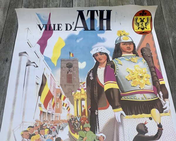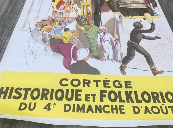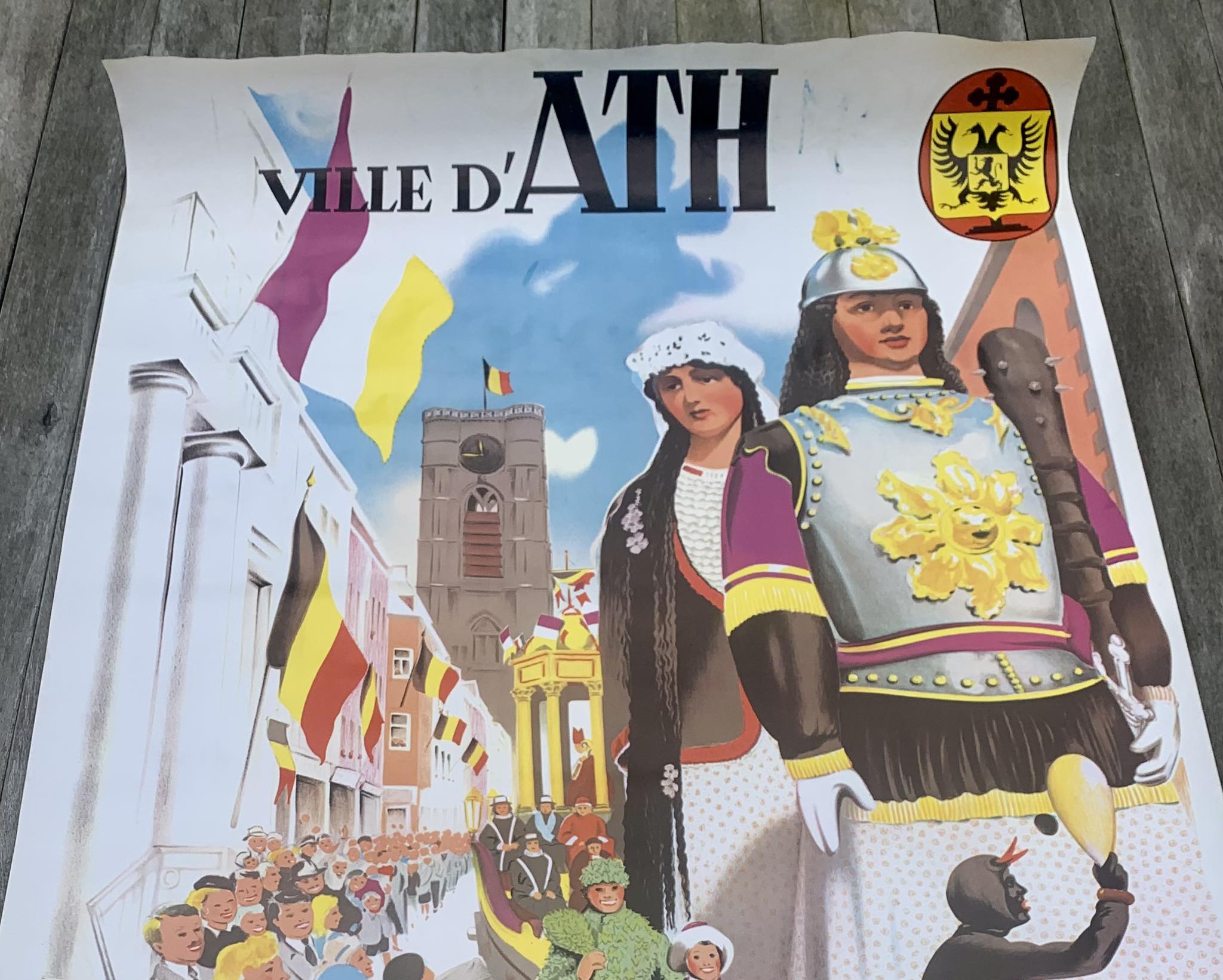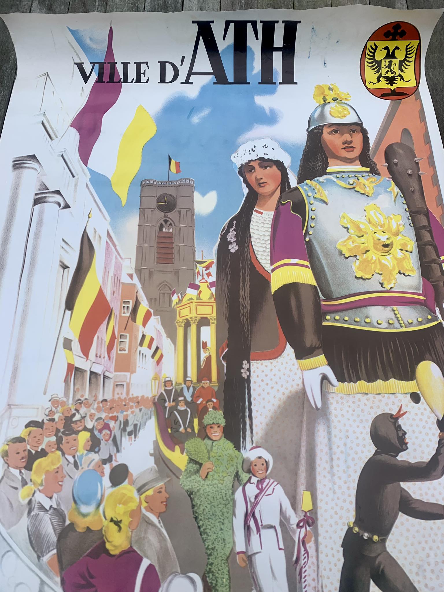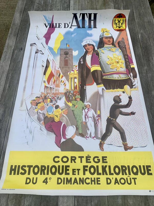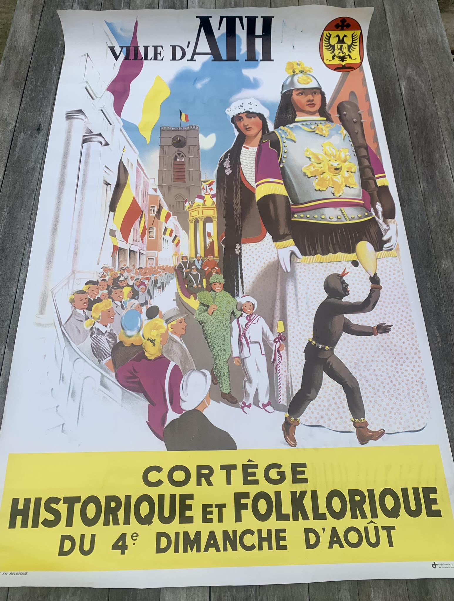 Affiche Cortège Historique et Folklorique Ath. Affiche originale de la grande ducasse de 1952 imprimée par P. Jacquet