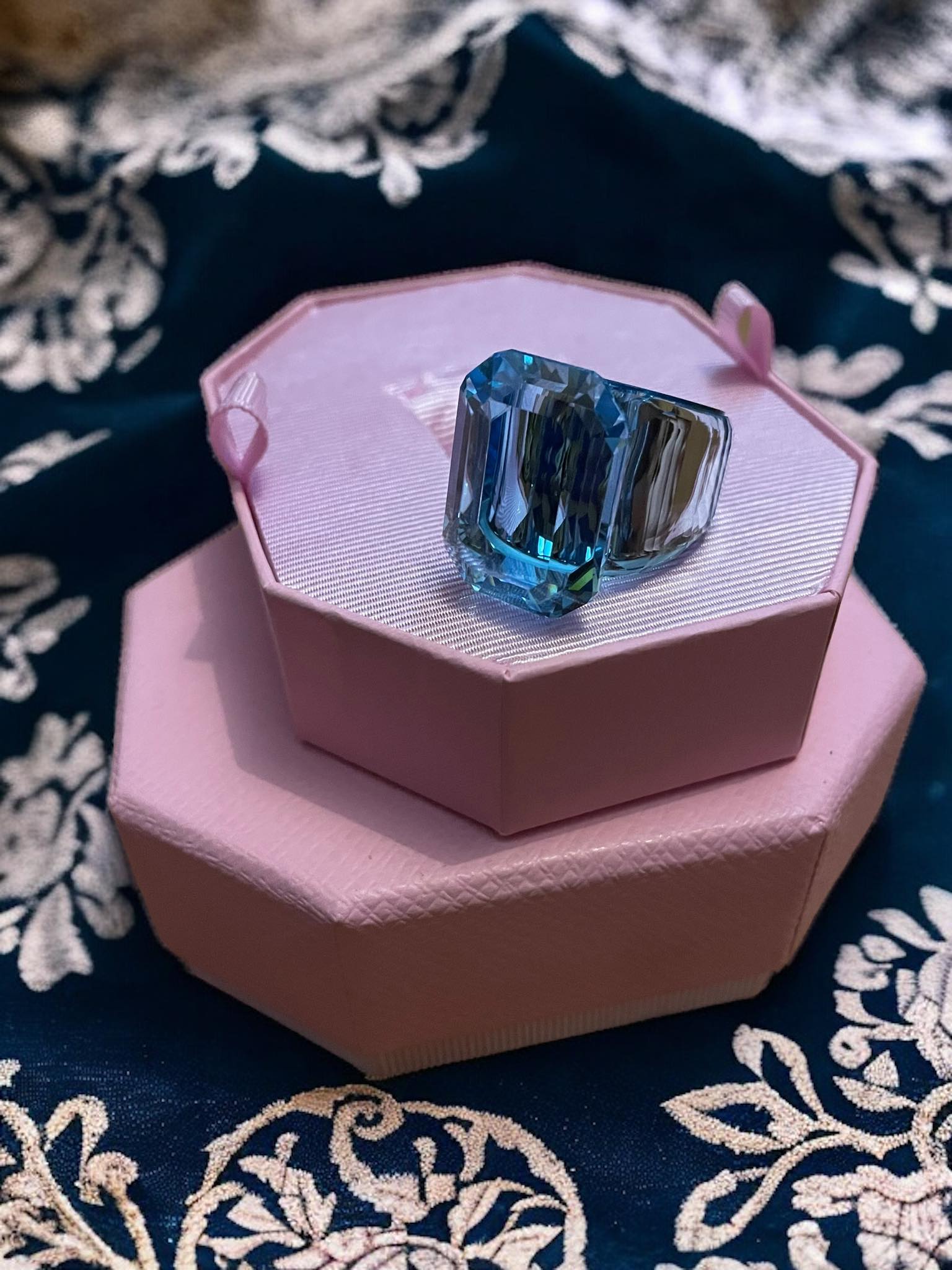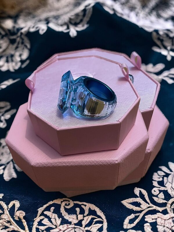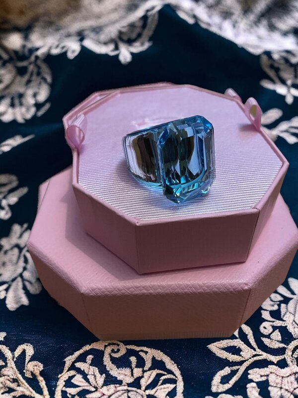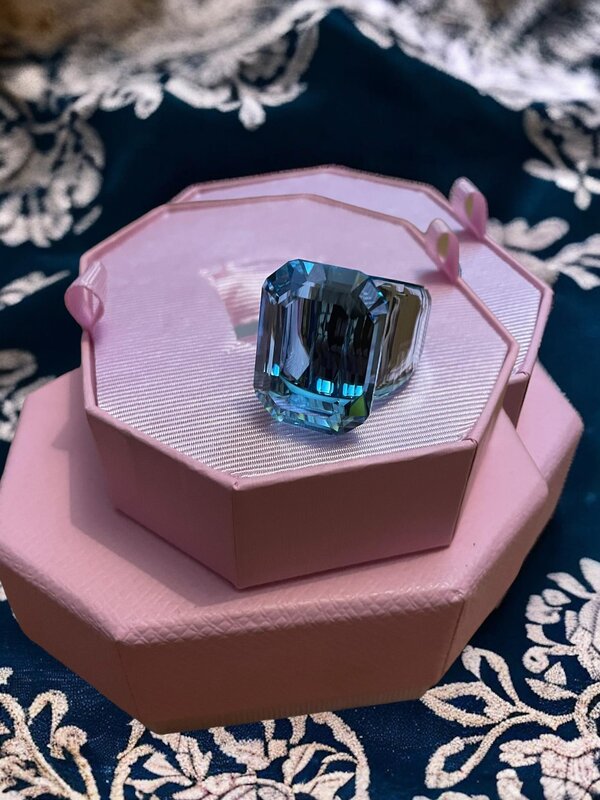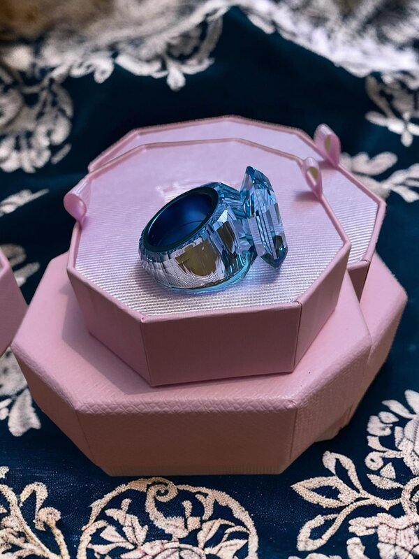 Avec sa superposition de cristaux, cette bague bleue éclatante s'inspire de l'héritage unique de Swarovski. Une pierre de taille octogone surplombe un anneau entièrement en cristal incrusté de métal ton sur ton à la finition raffinée. Cette bague fait partie de la famille Lucent et a été pensée par la directrice de création Giovanna Engelbert pour la Collection I