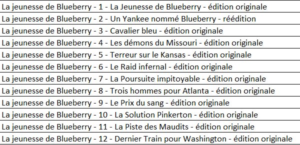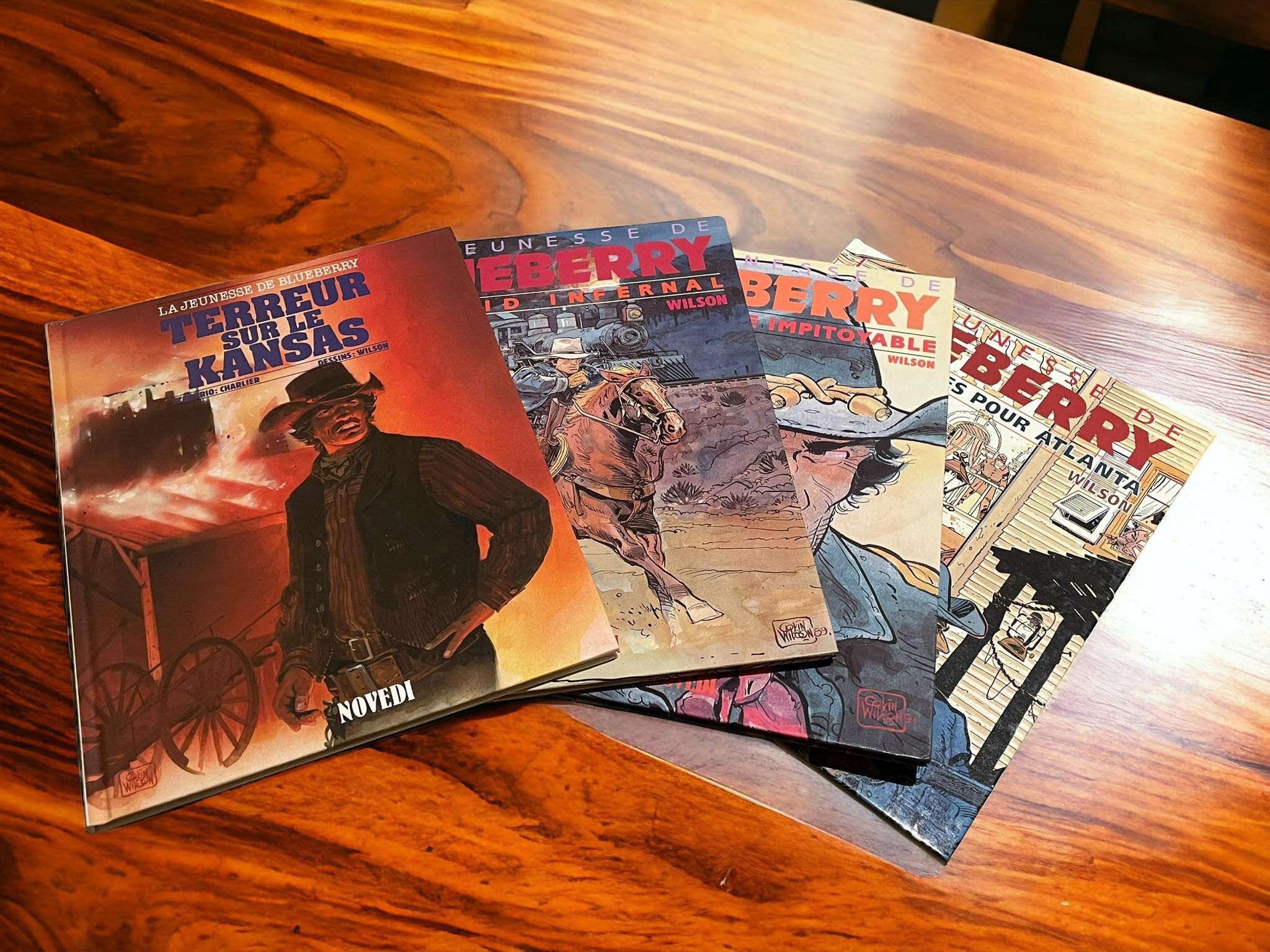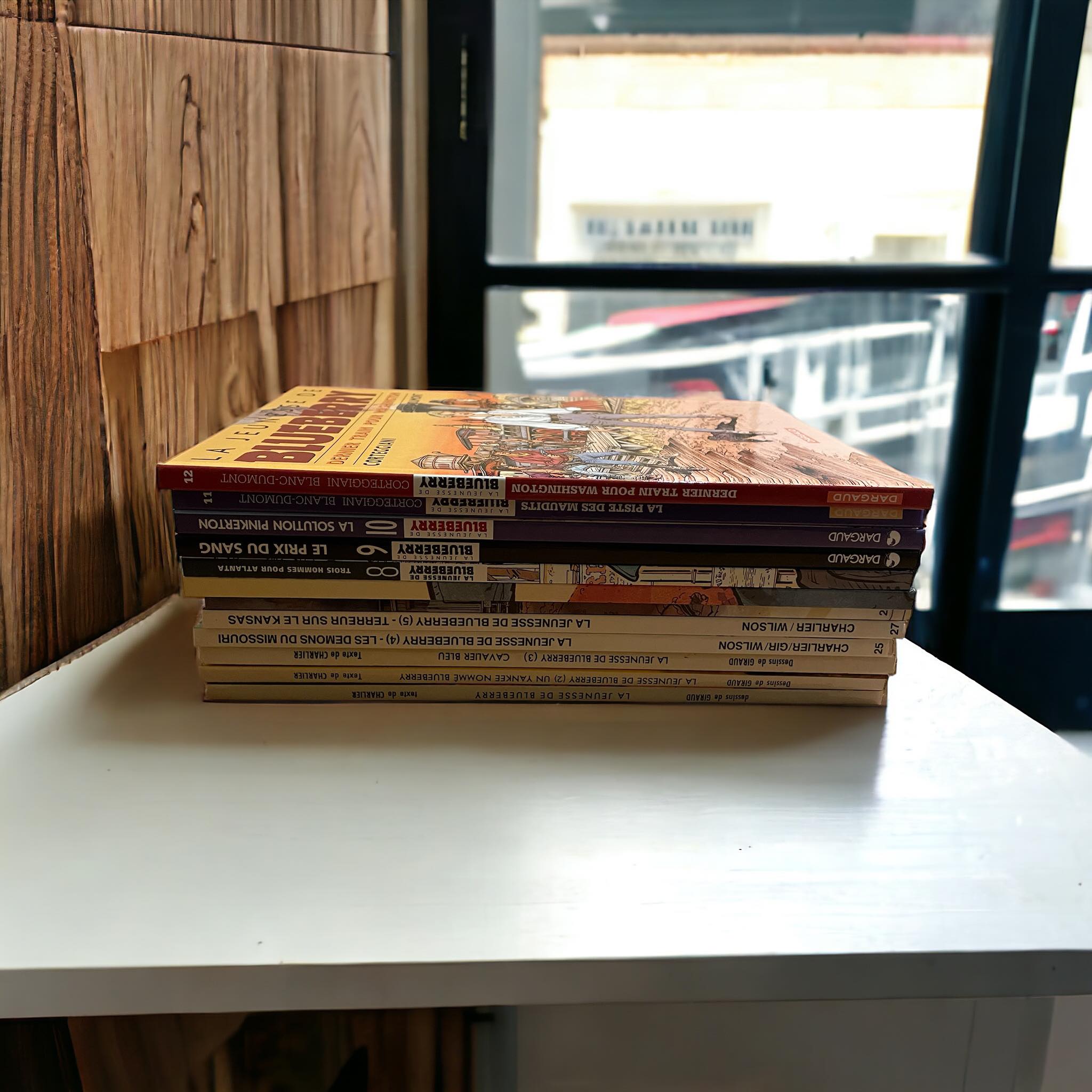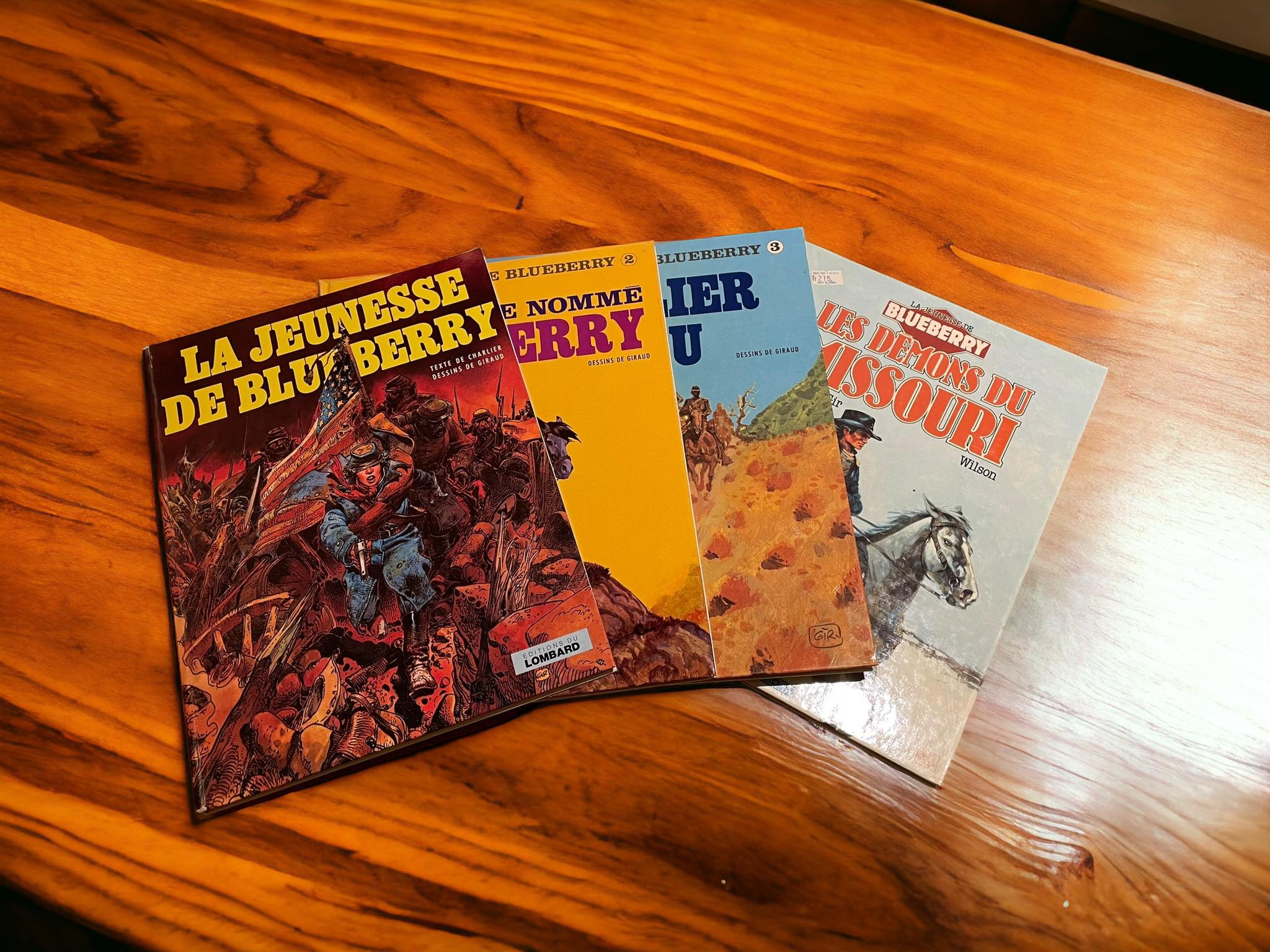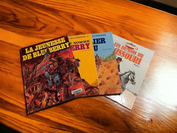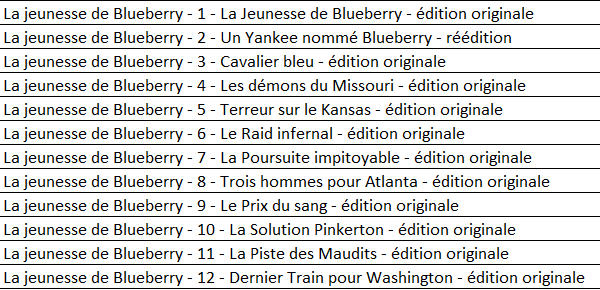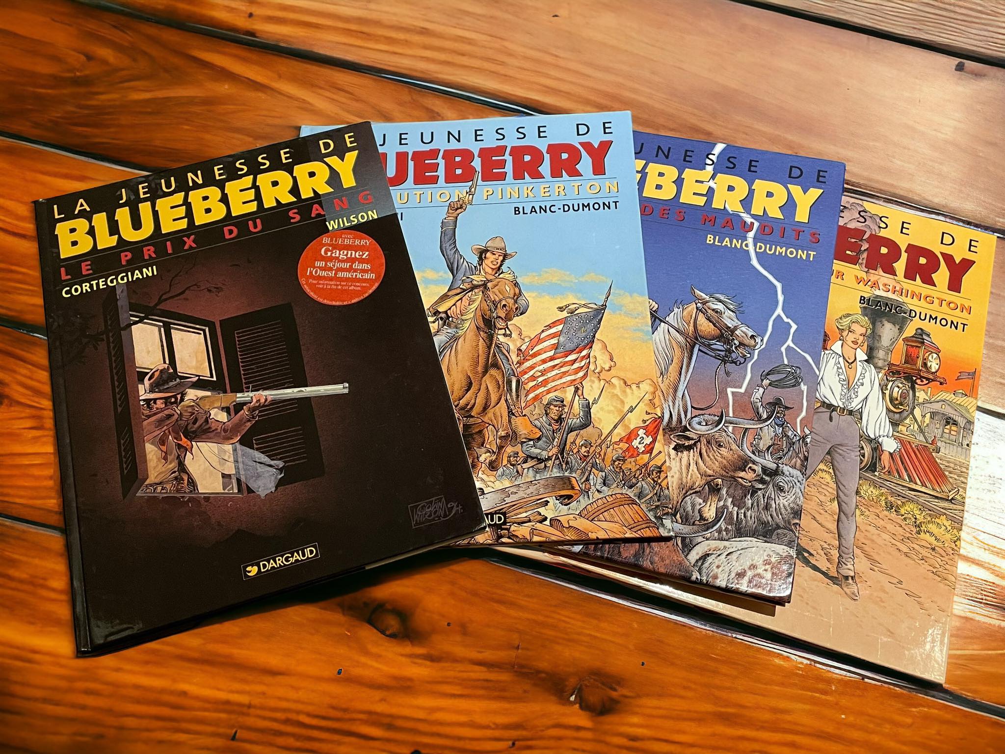 Bande dessinée La jeunesse de Blueberry, les 12 premiers numéros en édition originale et réédition (voir la photo pour le détail).