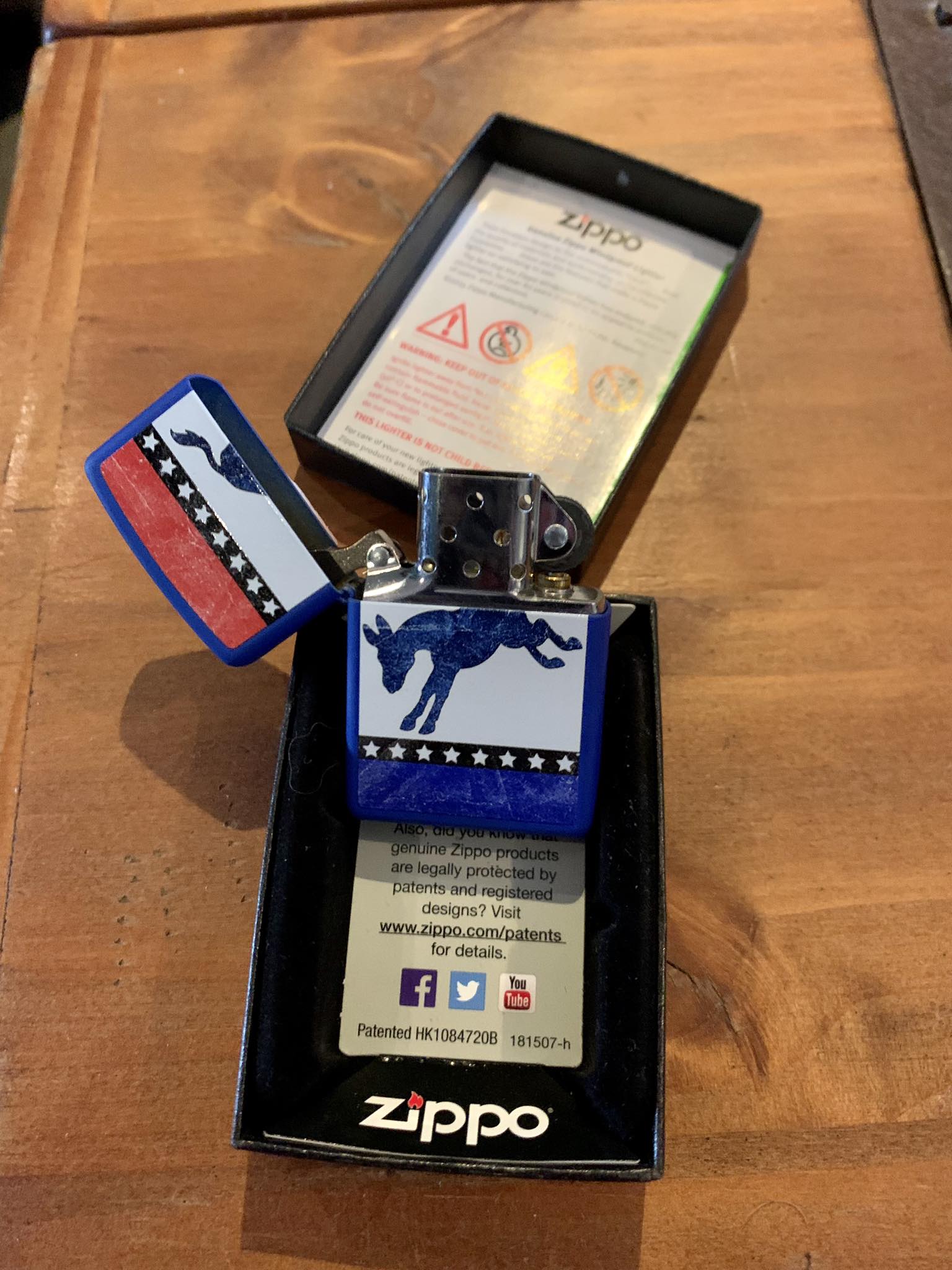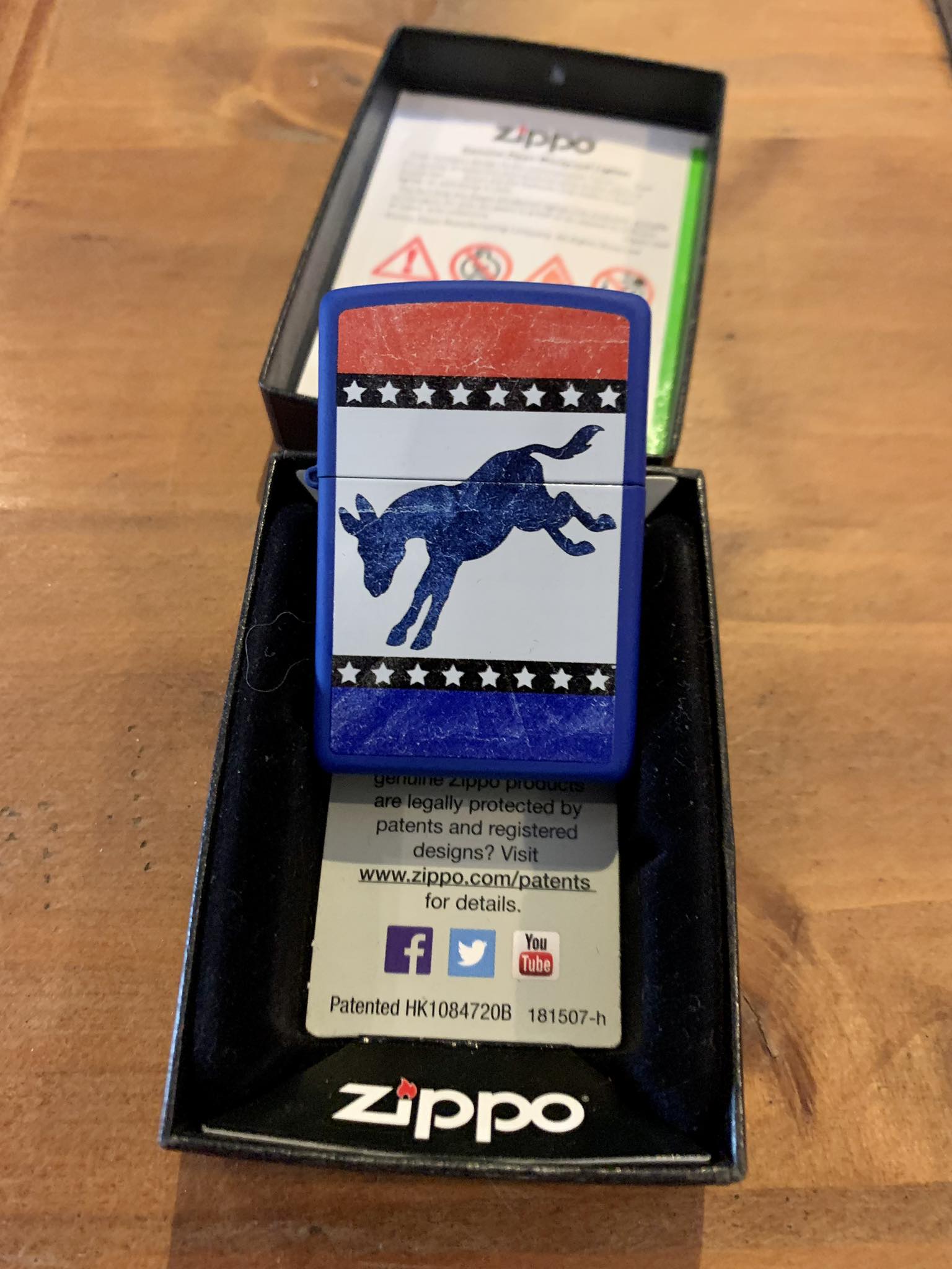 Briquet de la marque Zippo modèle Democratic donkey USA avec son coffret d'origine.