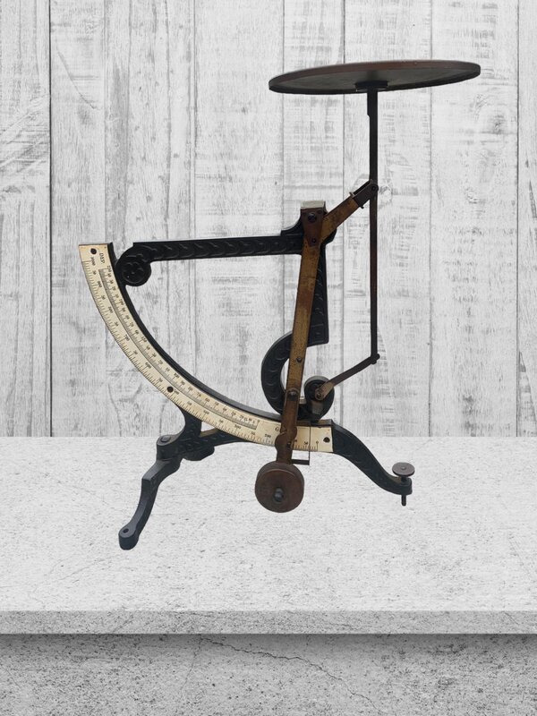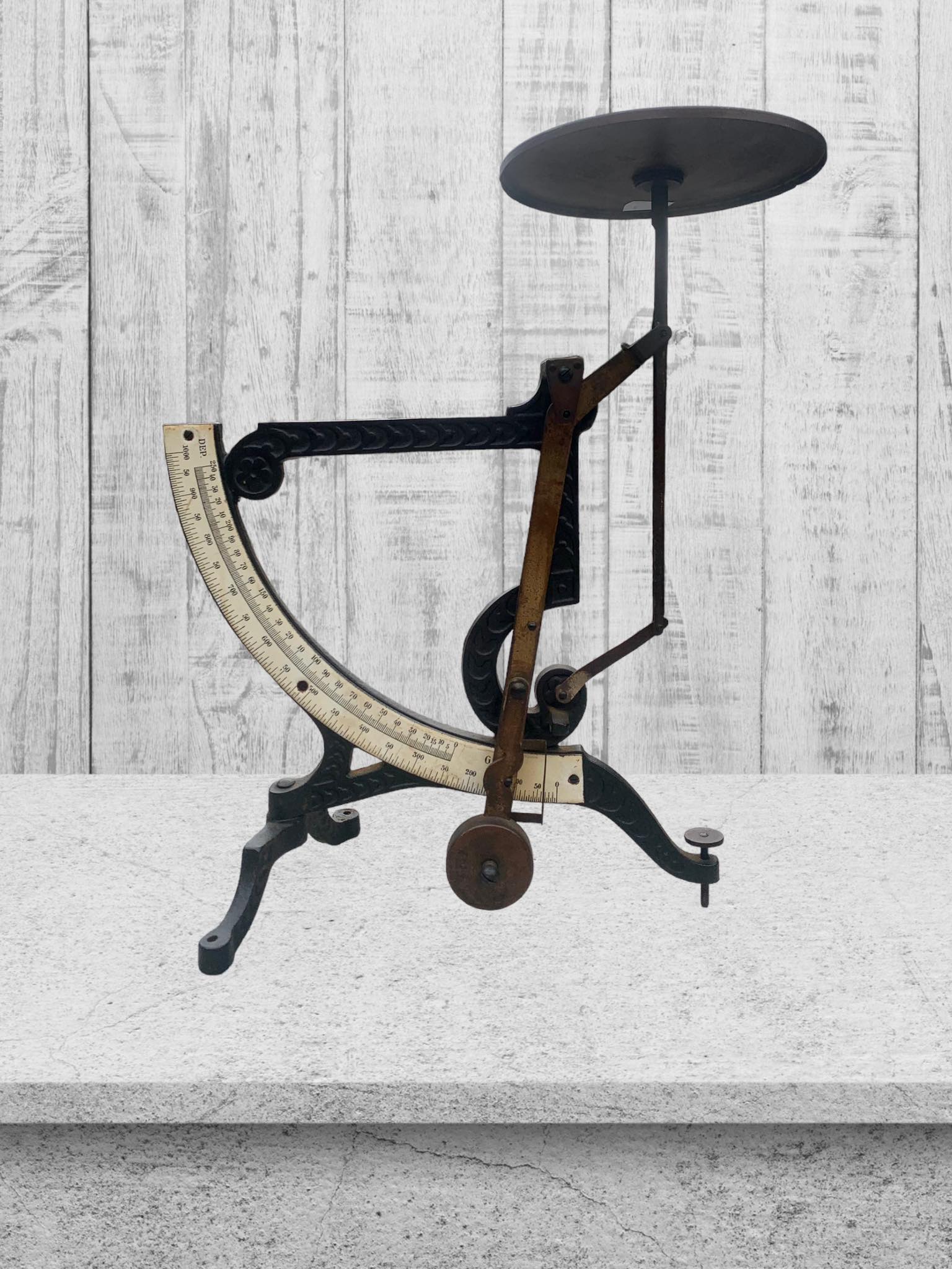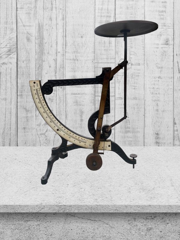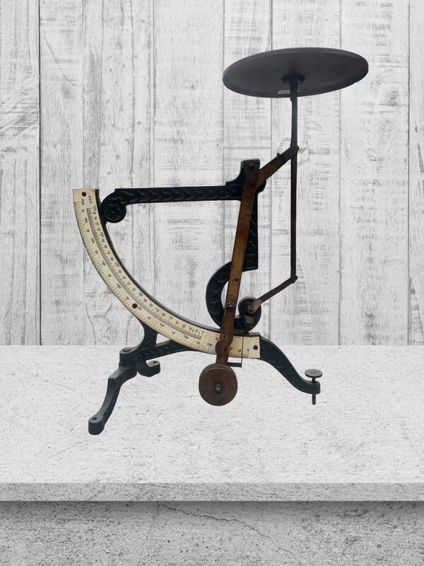 Pèse-lettre de 38 cm de haut en fonte et métal. Le pèse-lettre va jusqu'à 1kg.