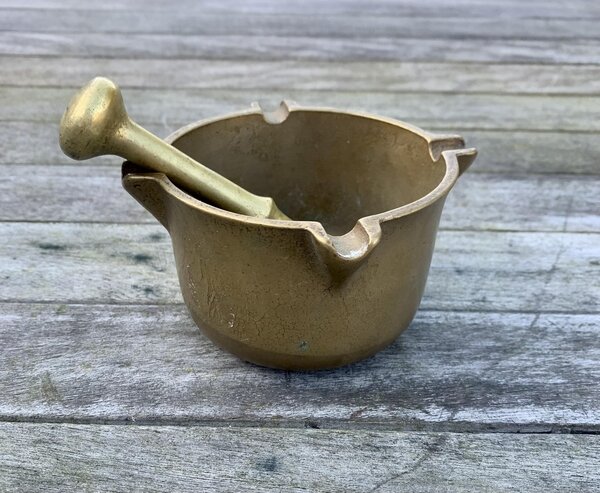 Mortier : 11,5 cm de diamètre sur 6 cm de haut - pilon : 12 cm de long sur 2 cm de large