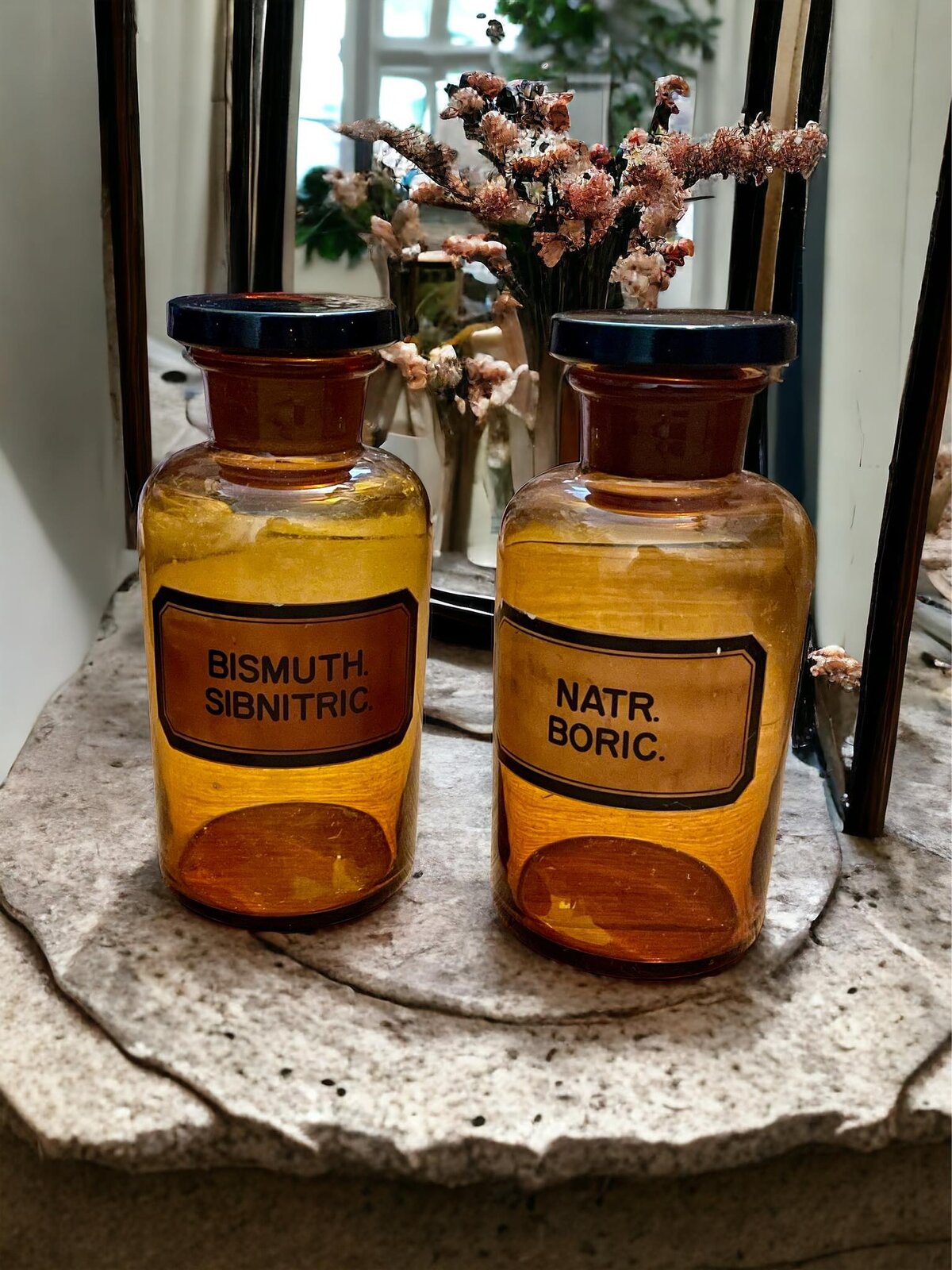 Lot de 2 flacons d'apothicaire avec bouchon plat