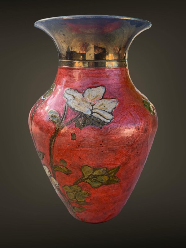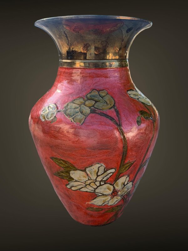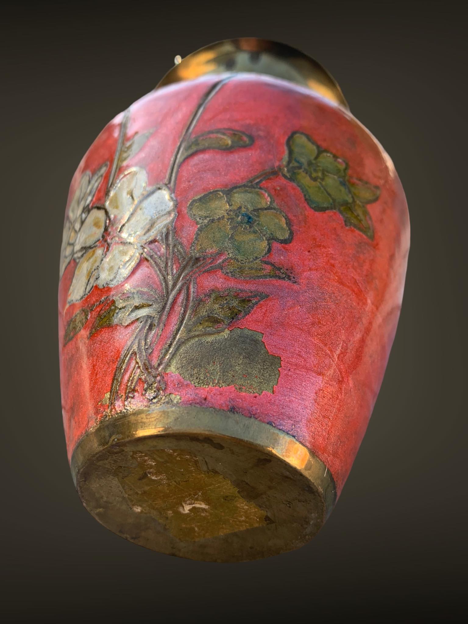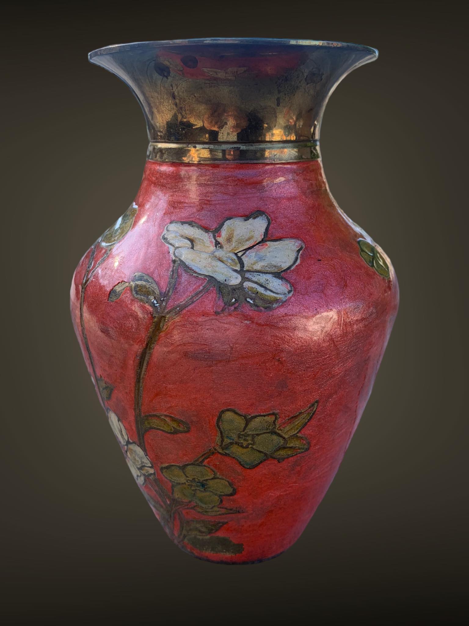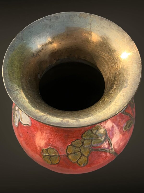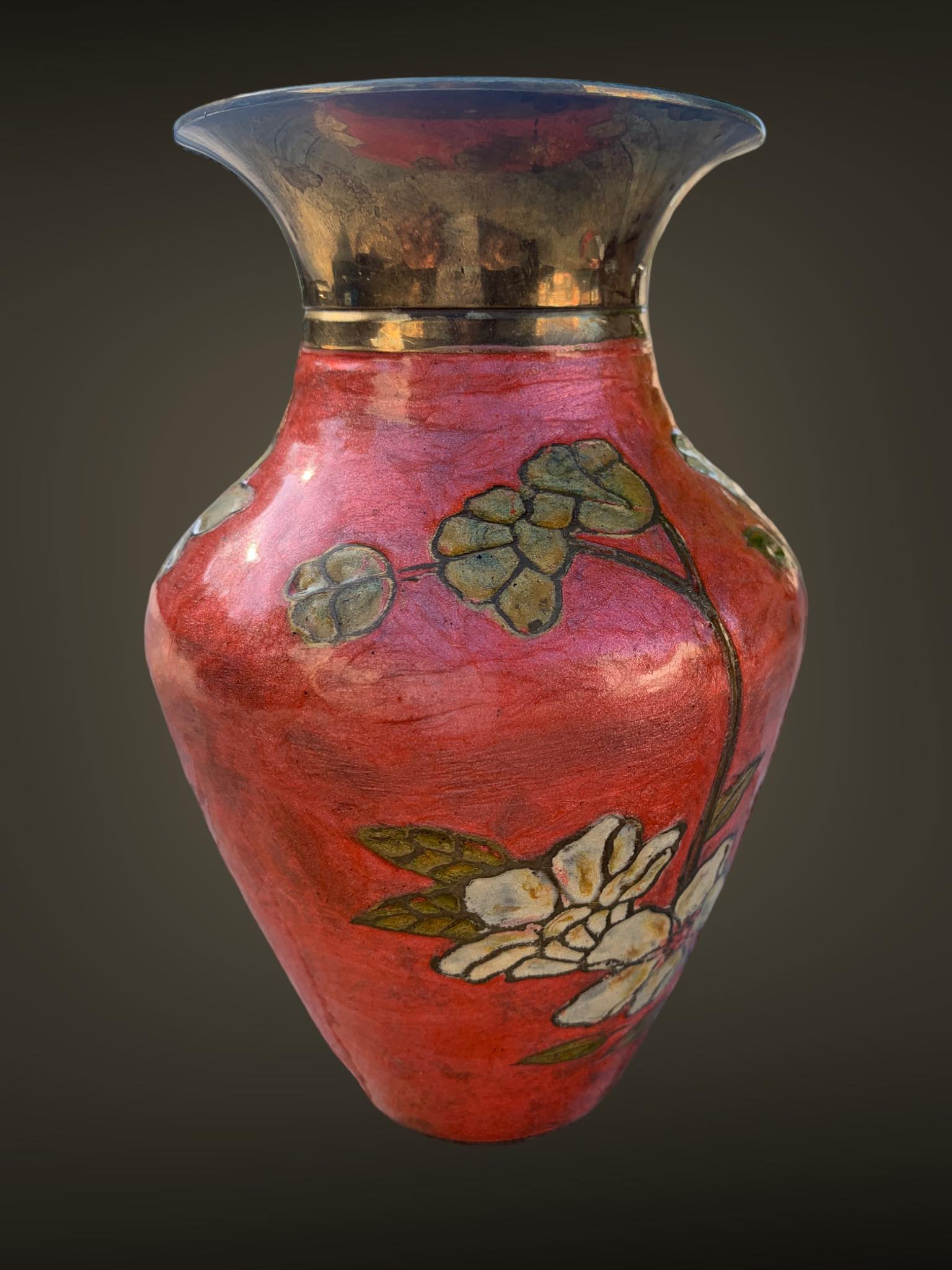 Vase en émaux cloisonnés à décor floral et en laiton. Modèle provenant d'Inde.